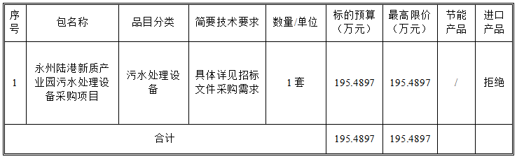 湖南永州国际陆港有限公司(采购人名称)的永州陆港新质产业园污水处理设备采购项目(项目名称)进行公开招标采购,现邀请合格投标人参加投标。