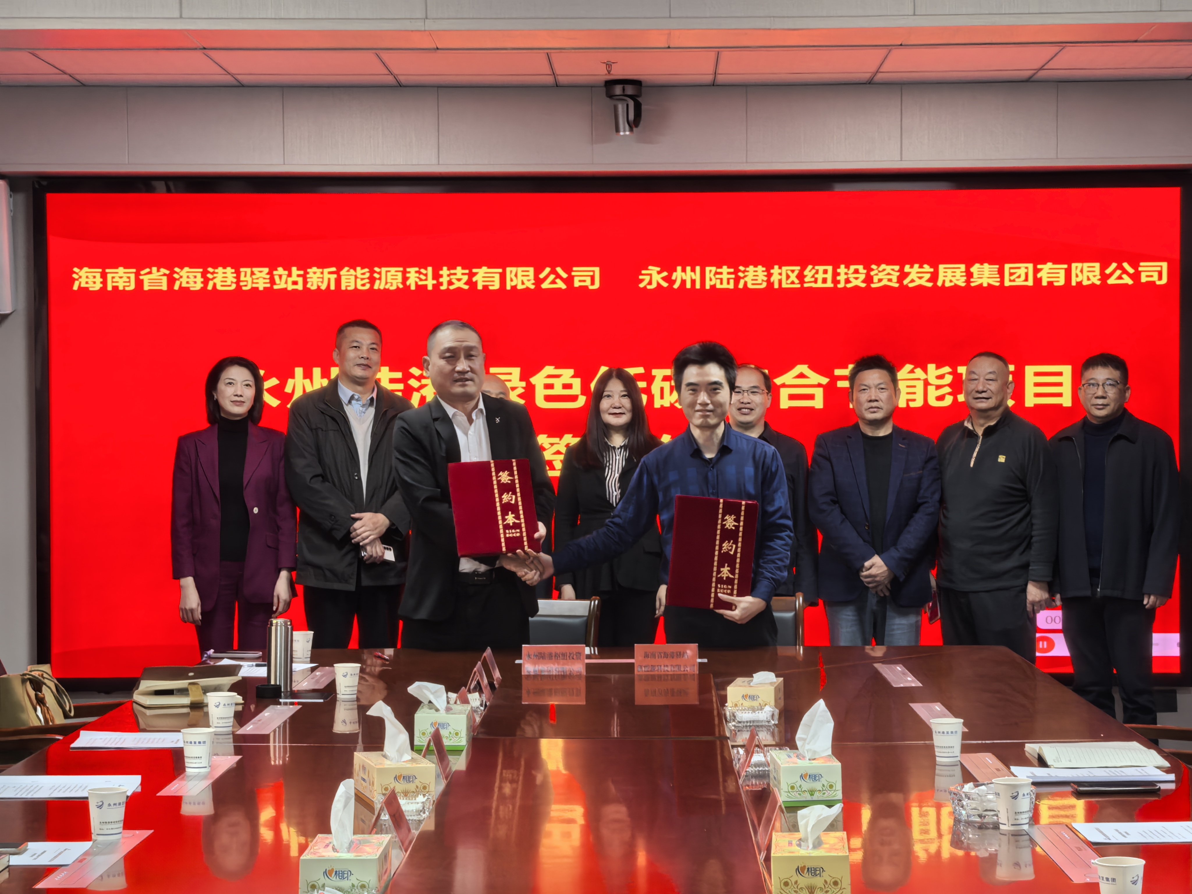 1月15日,永州陆港枢纽投资发展集团有限公司与海南省海港驿站新能源科技有限公司举行签约仪式,合作开展永州陆港绿色低碳综合节能项目。